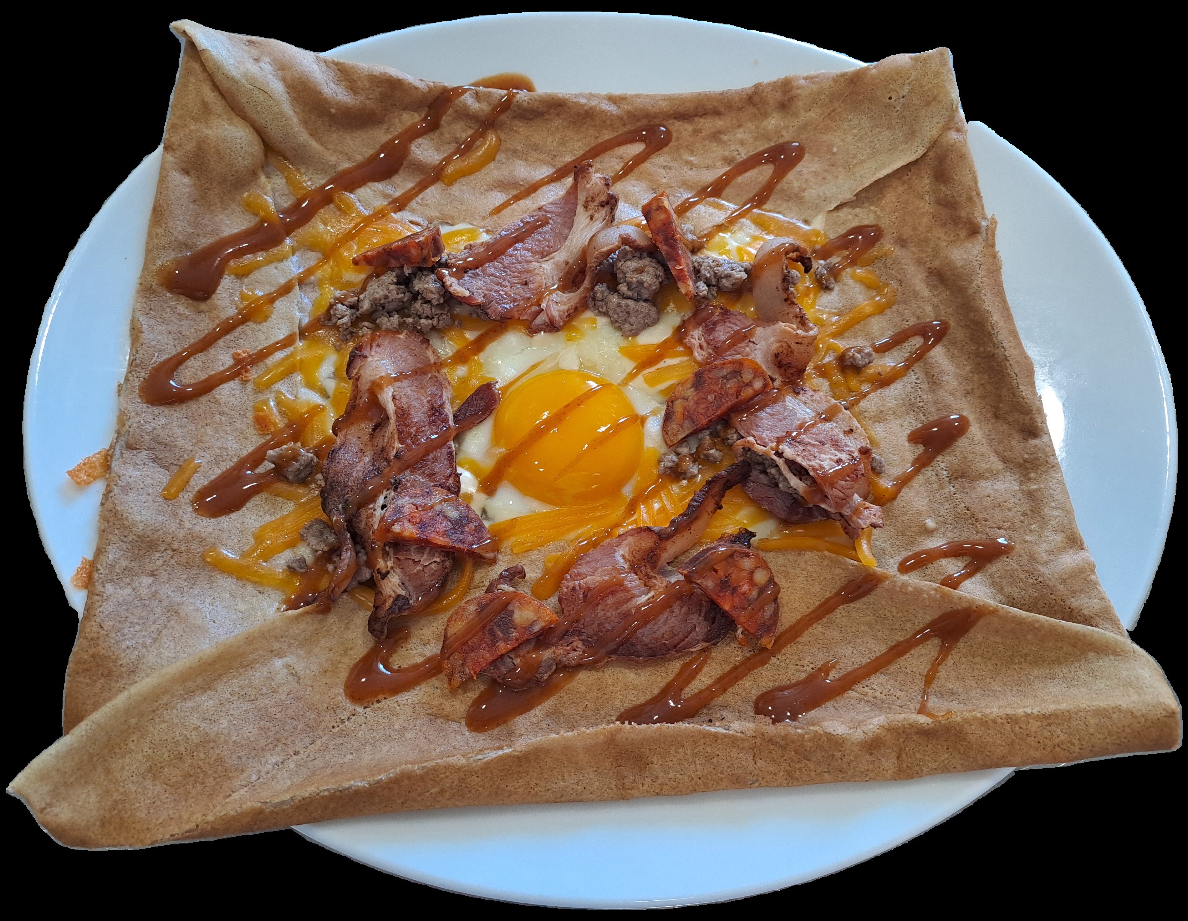Mozzarella/Cheddar, Egg, Ground beef, Bacon, Chorizo, BBQ sauce