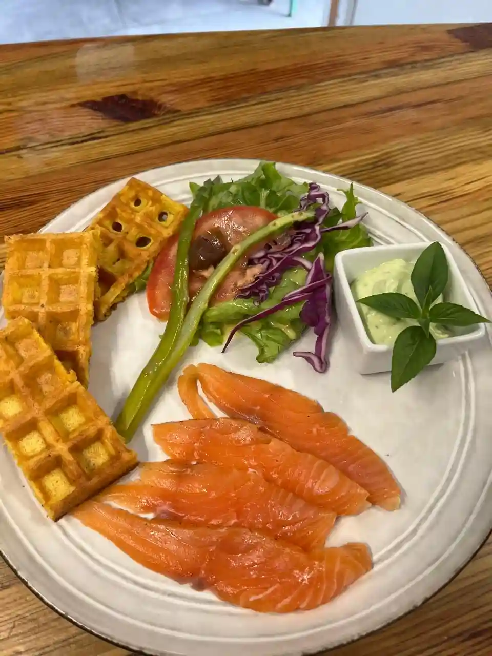 Restaurant's Signature Dish, Plantain Stuffed with Codfish Chiquetaille, Red Bell Pepper Coulis with Coconut Milk, Vegetables of the Day