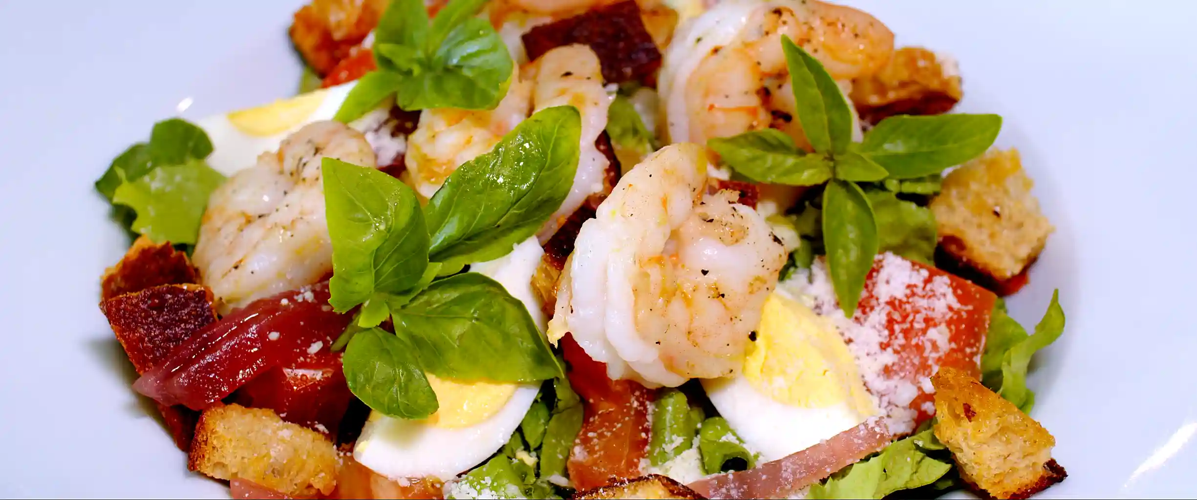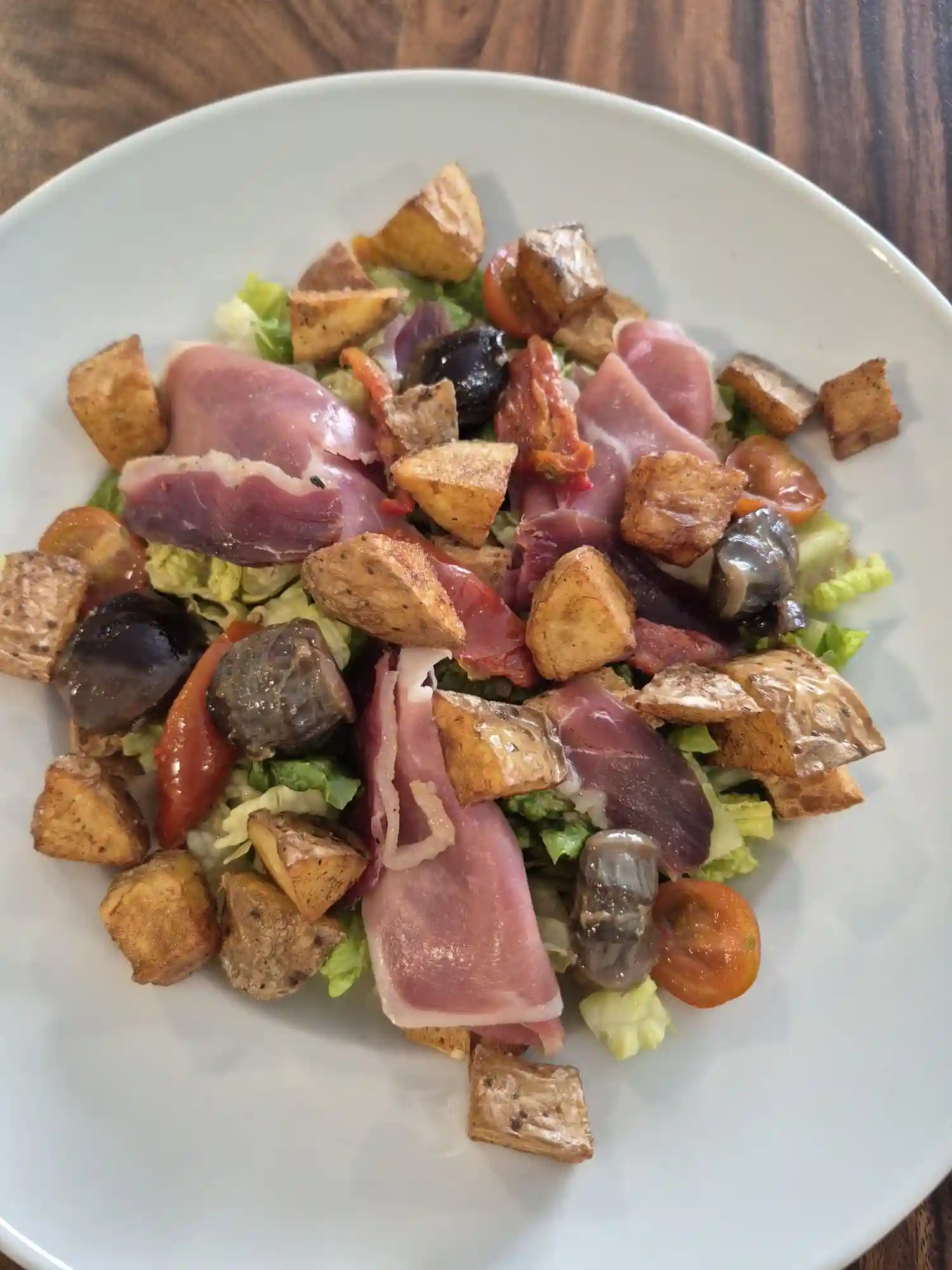 Salade, Gésiers Confits, Magret Séché, Jambon sec, Vinaigrette au Xérès