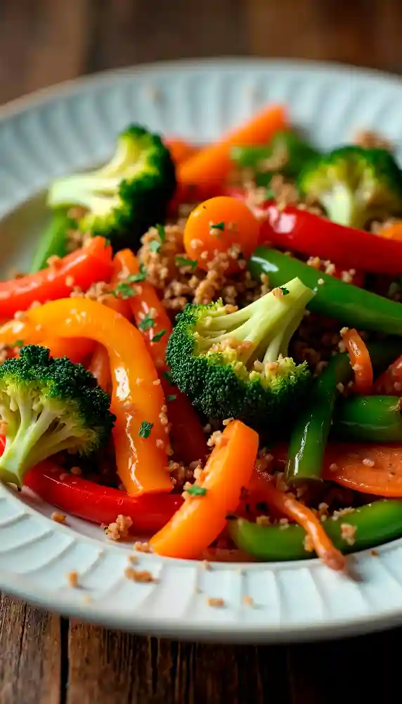 Pork loin cooked at low temperature, Vegetables, Caramel sauce, White rice
