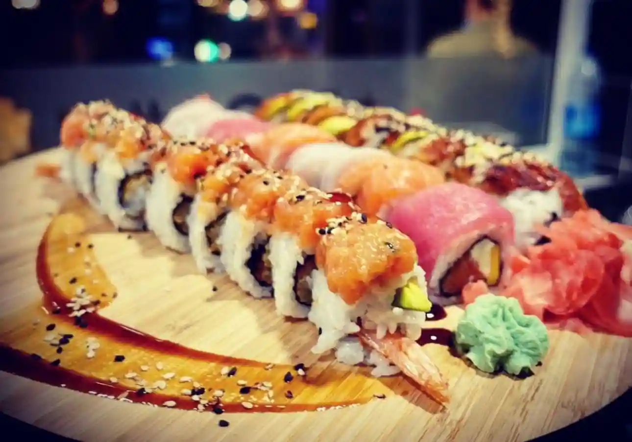 Soft crab, Avocado, Cucumber, Spicy tuna, Pickled radish, Mayonnaise yum yum, Tobiko